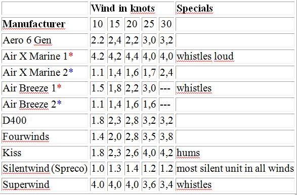 Tra l’altro, come potete vedere, il SilentWind è l’unico che genera corrente (anche se solo 0,5 Ampere) con soli 6 nodi di vento.
